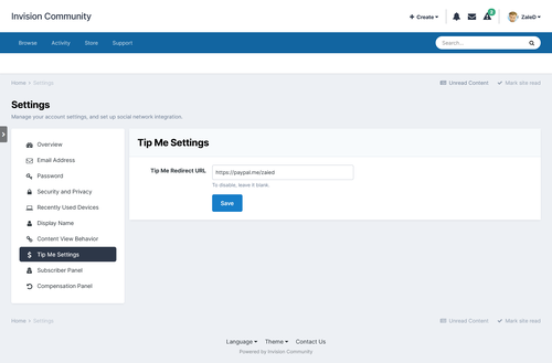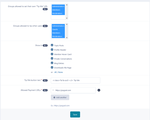 - Select user groups allowed to set their own tip jar URL.