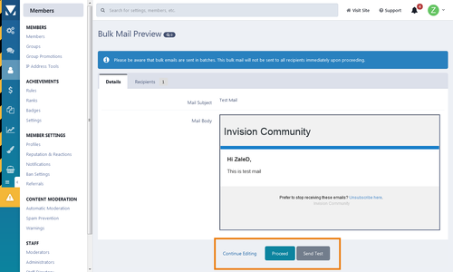 About This File This plugin will allow admins to test bulk mail (by sending to a single email address) before mass sending.