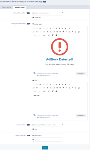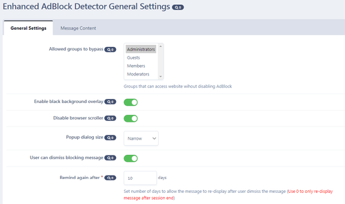 - Select user groups that will be blocked if they enabled AdBlocker.